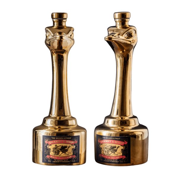 Shanky’s Whip is an Irish whiskey-based liqueur brand that leans into humour, character and a slightly offbeat identity. Rather than presenting itself like a traditional heritage bottle, it plays with bold visuals and an irreverent tone, while still delivering a recognisably Irish flavour profile. The drink blends Irish whiskey with spirit, caramel and vanilla flavours, creating a sweet, smooth style that works both for casual sipping and for cocktails. The Golden Ostrich edition pushes that personality even further, turning the brand’s eccentric mascot into a ceramic trophy-style bottle that feels made for gifting or display. Shanky’s has built its appeal around being approachable, unusual and instantly recognisable, which helps it stand out in a crowded liqueur category.