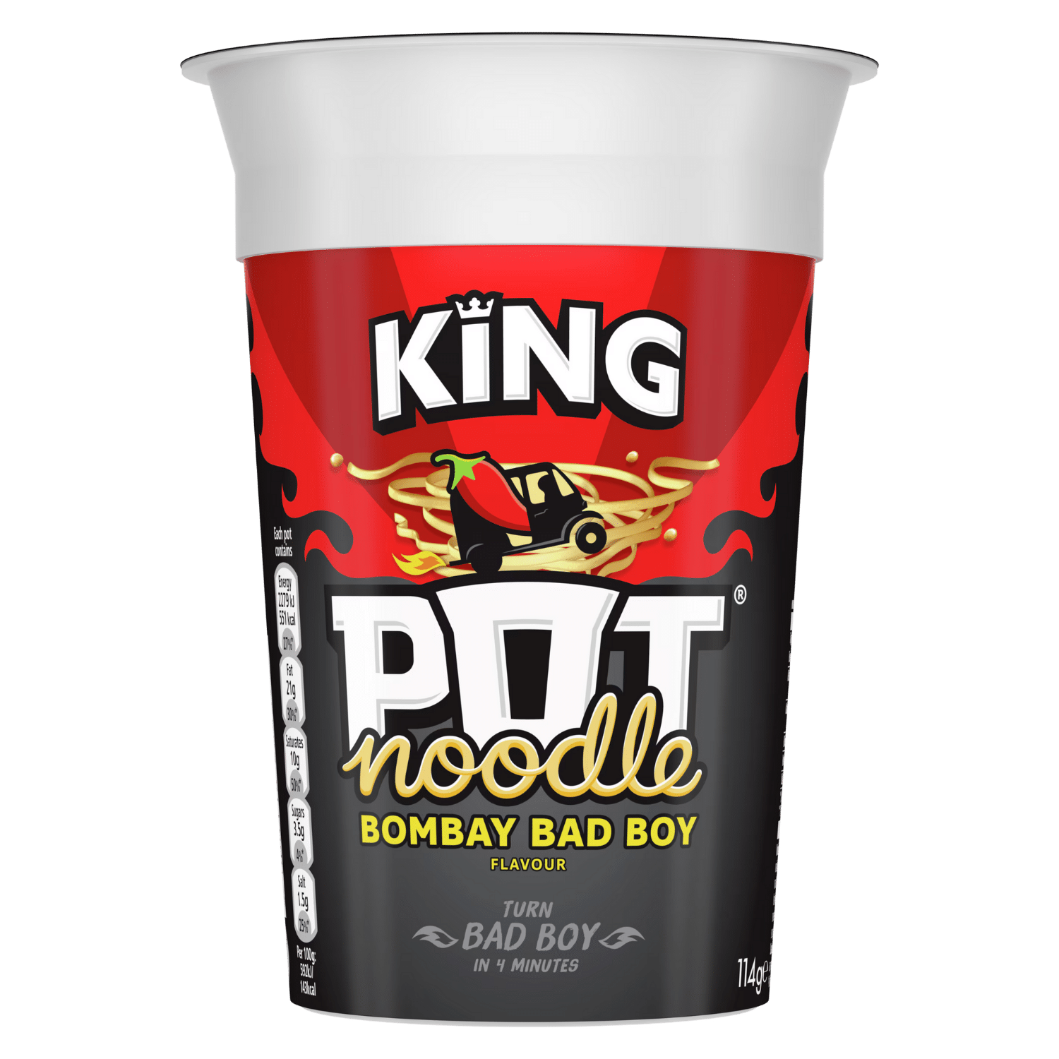 KING Pot Noodle Bombay Bad Boy is one of the boldest flavours in the Pot Noodle range – but make it KING sized! Designed for those who actively seek heat rather than avoid it. This iconic instant noodle cup delivers intense spice, savoury depth, and unmistakable attitude in a format that is fast, filling, and unapologetically punchy.