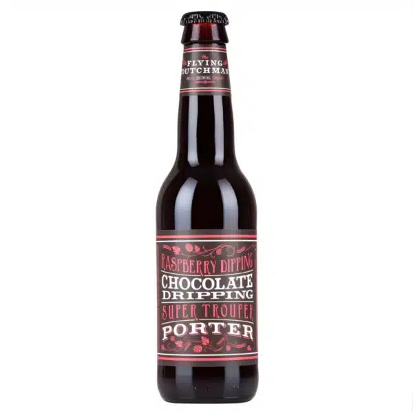 Flying Dutchman’s Raspberry Dipping Chocolate Tripping Super Trouper Porter is a bold, dessert-style craft beer that blends rich roasted malt with deep layers of chocolate and bright raspberry sweetness. Smooth, full-bodied, and slightly decadent, this porter delivers a velvety cocoa character balanced by juicy berry notes, creating a flavour profile that feels like a liquid raspberry-chocolate truffle.